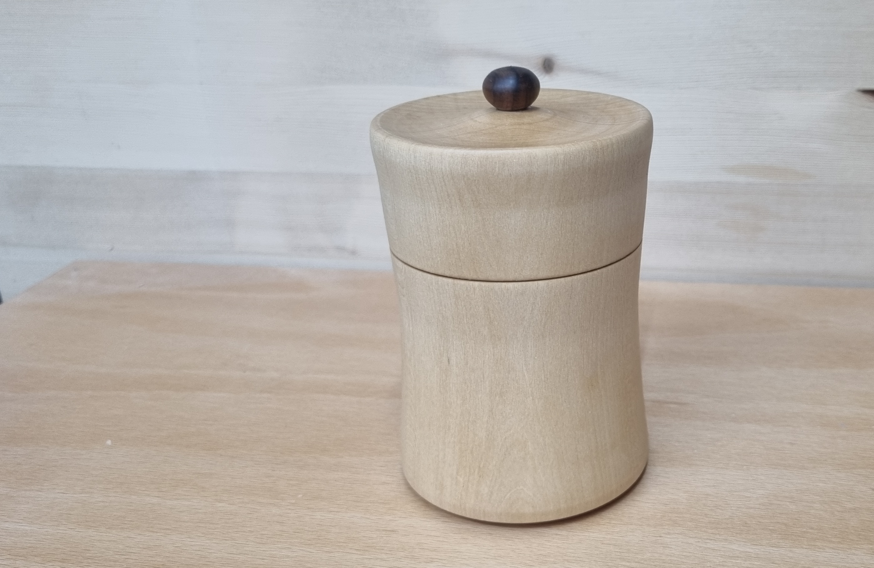 Hier meine erste Dose die ich nach meinem ersten Drechselkurs bei Hella Heiger herstellen konnte.