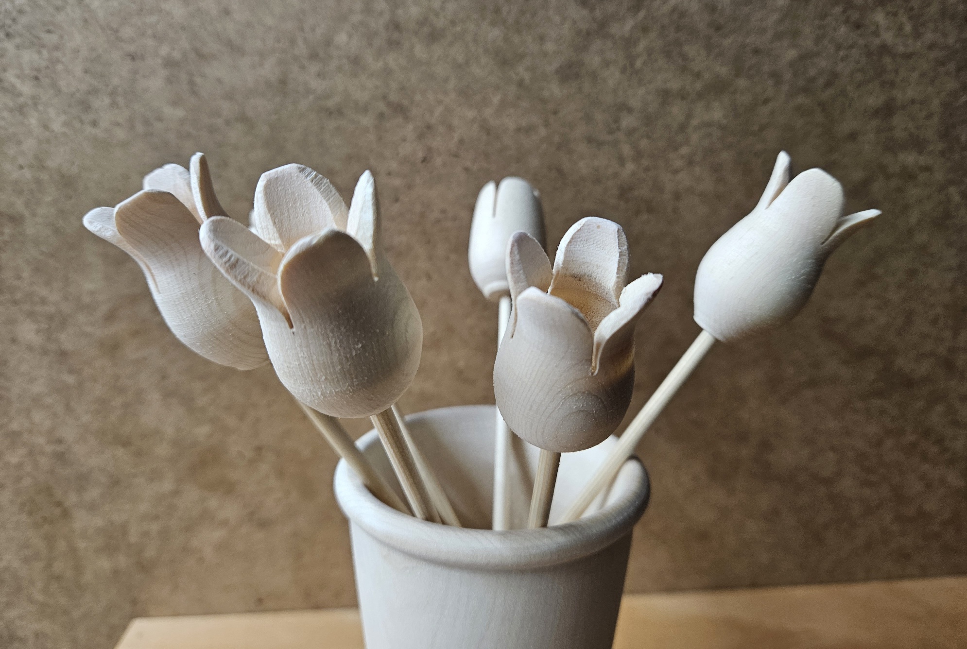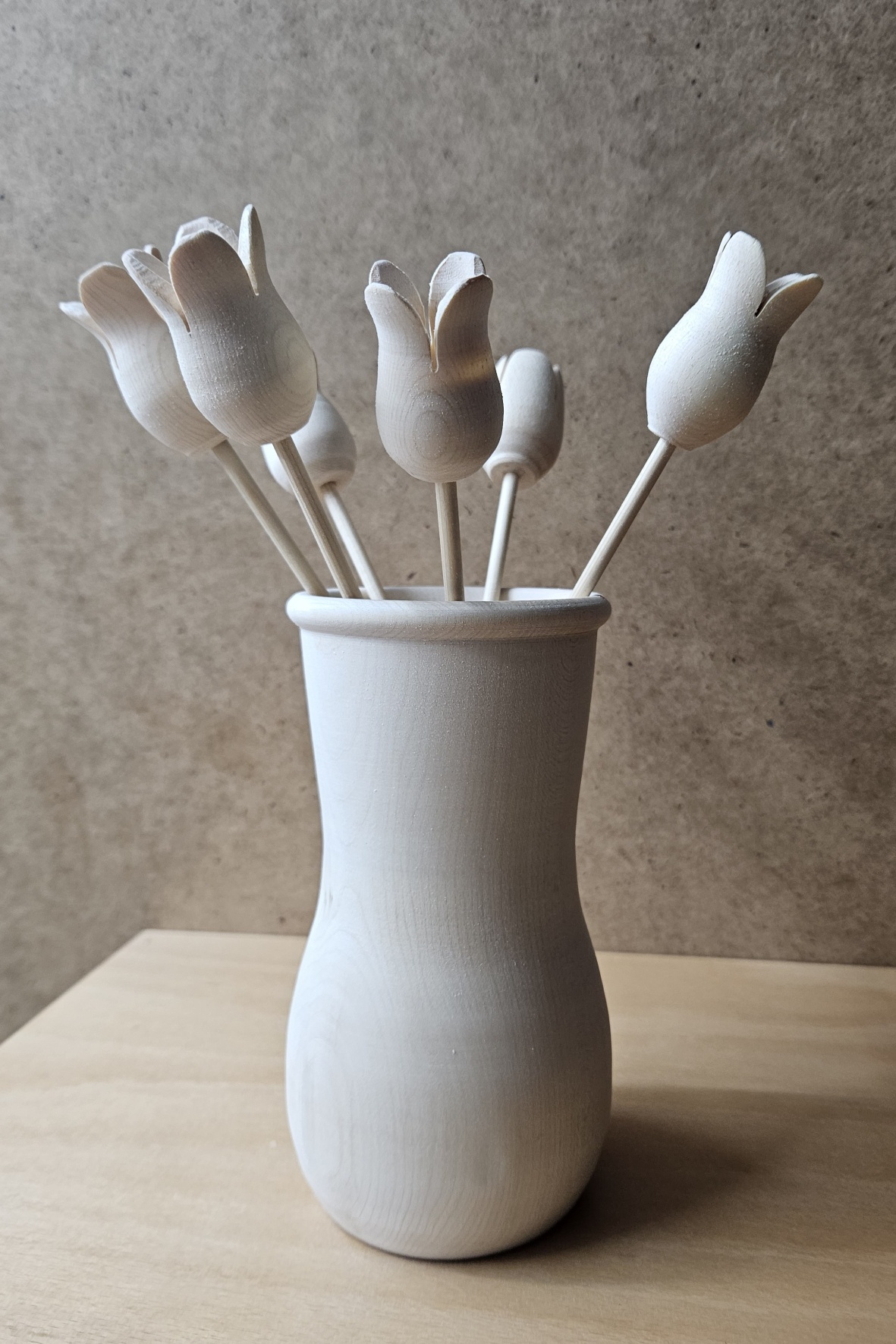 Hier hatte ich ein paar „Zirben-Holz“ Reste, die ich für Blumen-Deko genutzt hate. Die Vase ist auch Lindenholz.