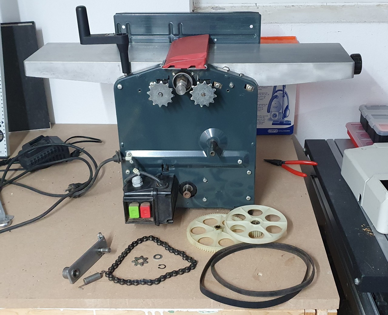 Die Riemen für den Antrieb und den Vorschub waren alt und hart. Dadurch rutschten diese durch.