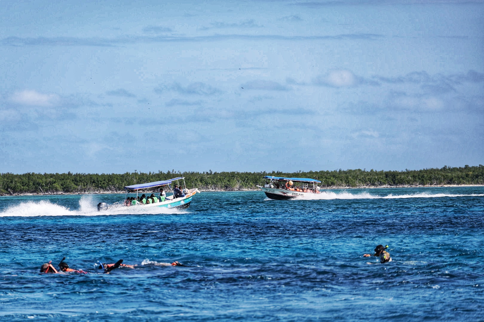 Danach geht es mit Boot entlang der Küste Richtung Süden zum großem Barriere-Riff im Marine Park der Insel Cozumel. Ein Riff, dass zu den Top 10 Tauchplätzen weltweit zählt.