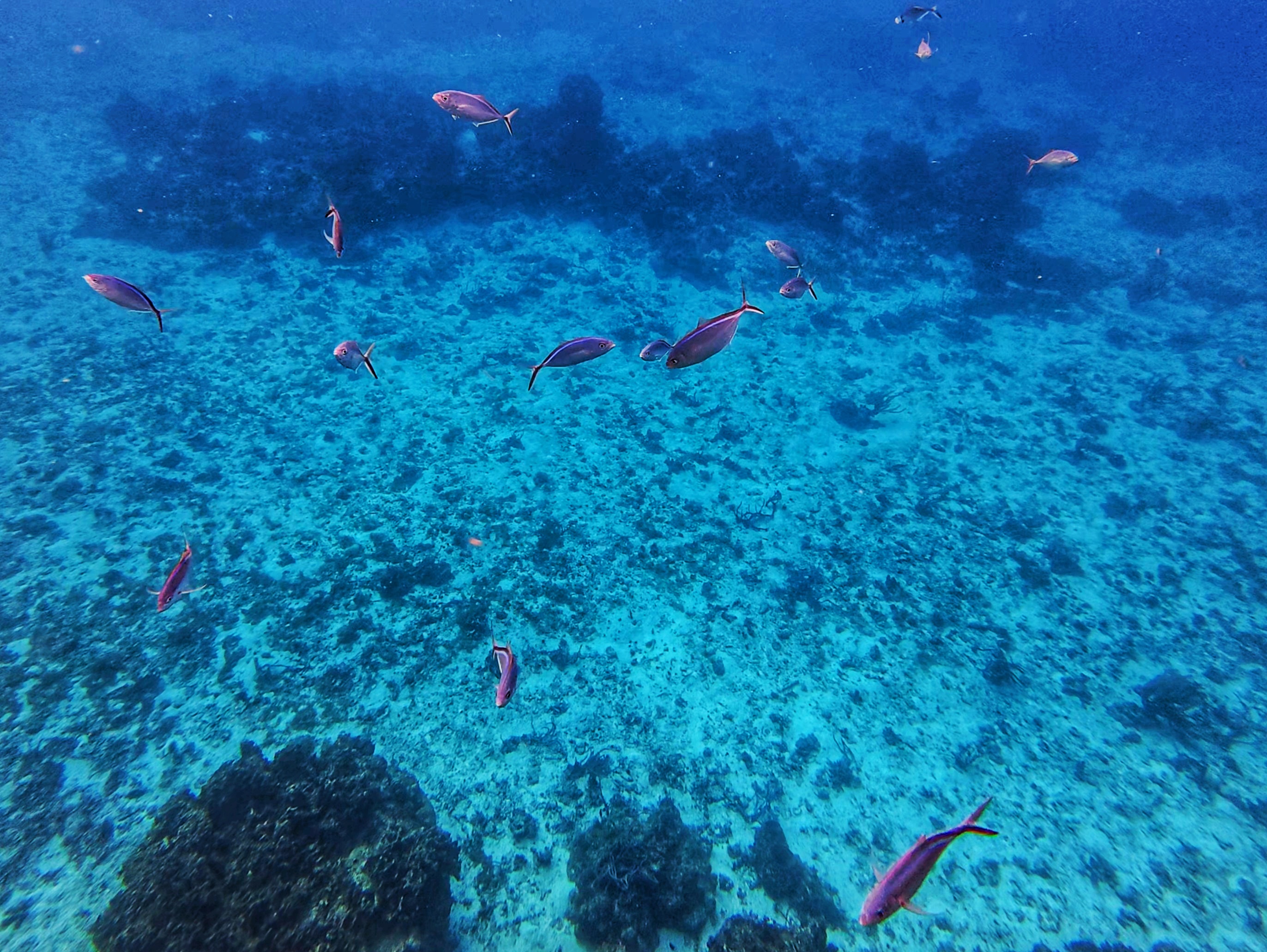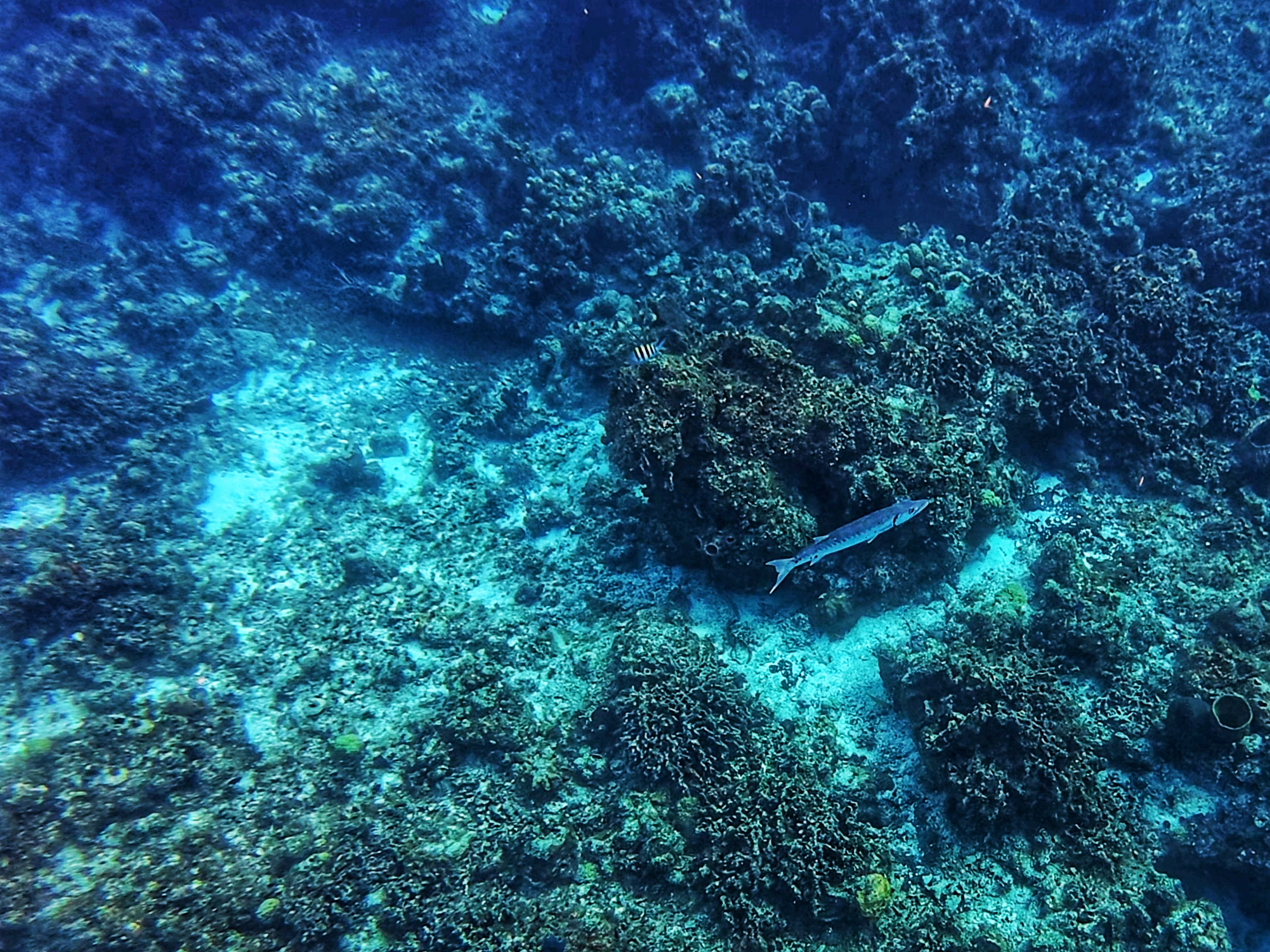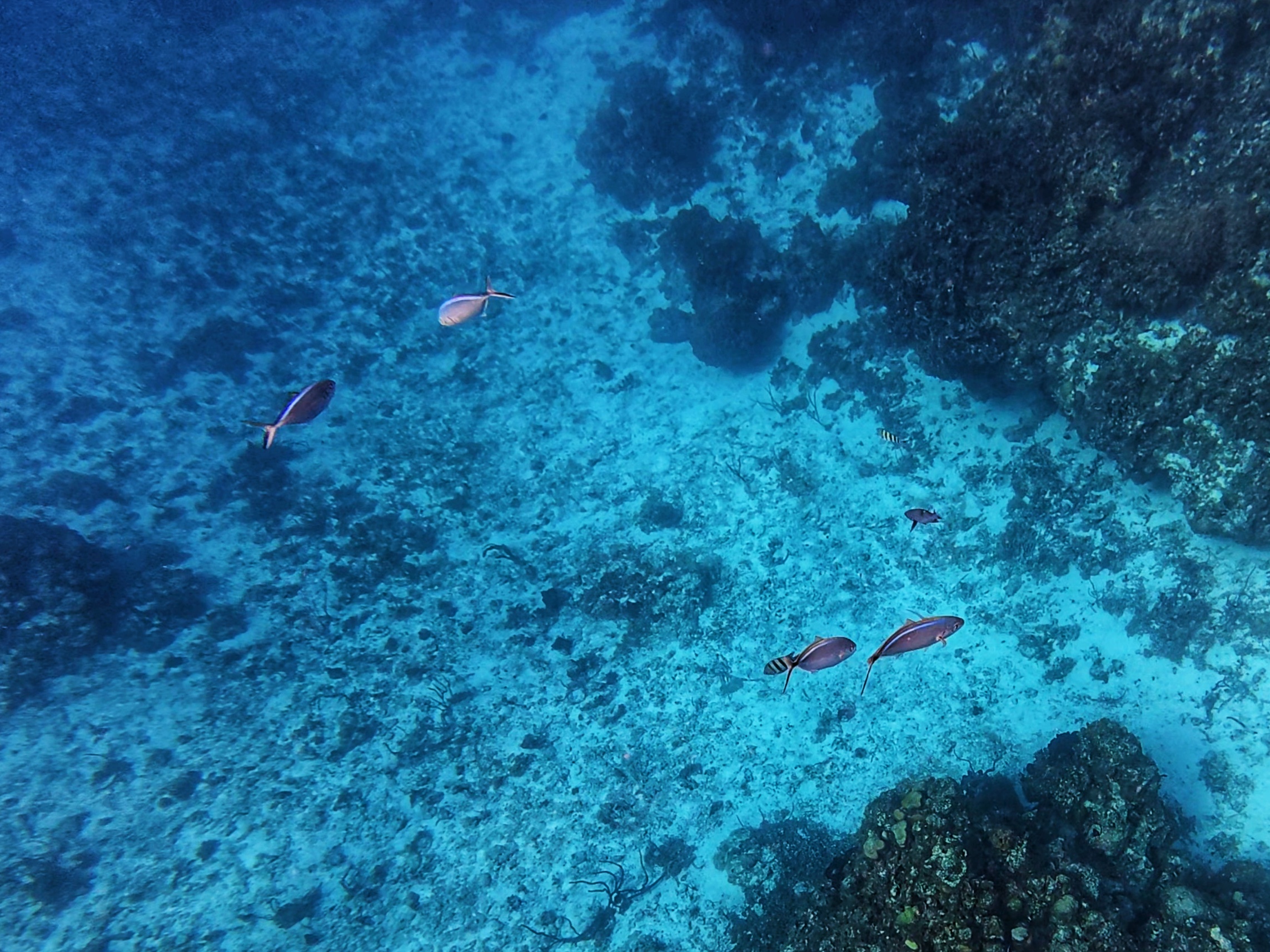 Ein farbenfrohes und gut erhaltenes Korallenriff mit Röhrenschwämmen und Gorgonienfächern bietet Lebensraum für zahlreiche Schwarmfische, aber ebeno das Seegras entlang der Sandbänke ist der optimale Lebensraum für Schildkröten und Seesterne. Möglichkeit der Sichtung von großen Stachelrochen, Seesternen, Schildkröten, Papageienfischen, Barrkudas und vielen anderen Schwarmfischen. Drei Schnorchelstopps in flacher bis moderater Tiefe mit möglicher Strömung.