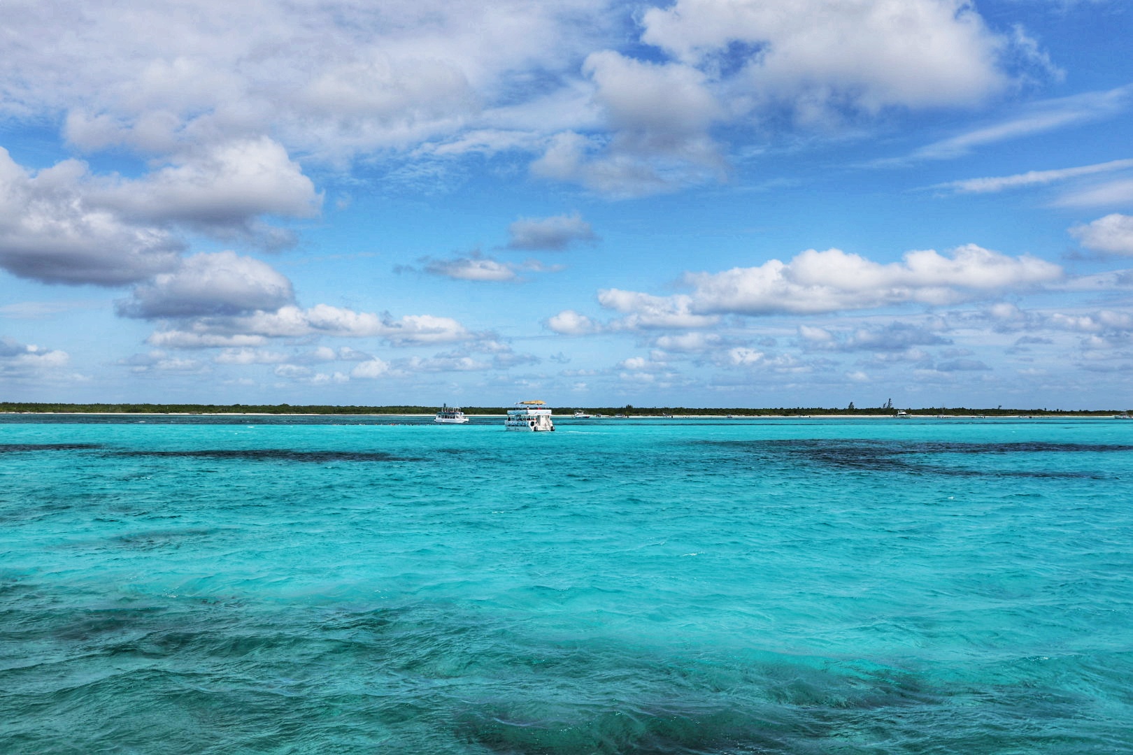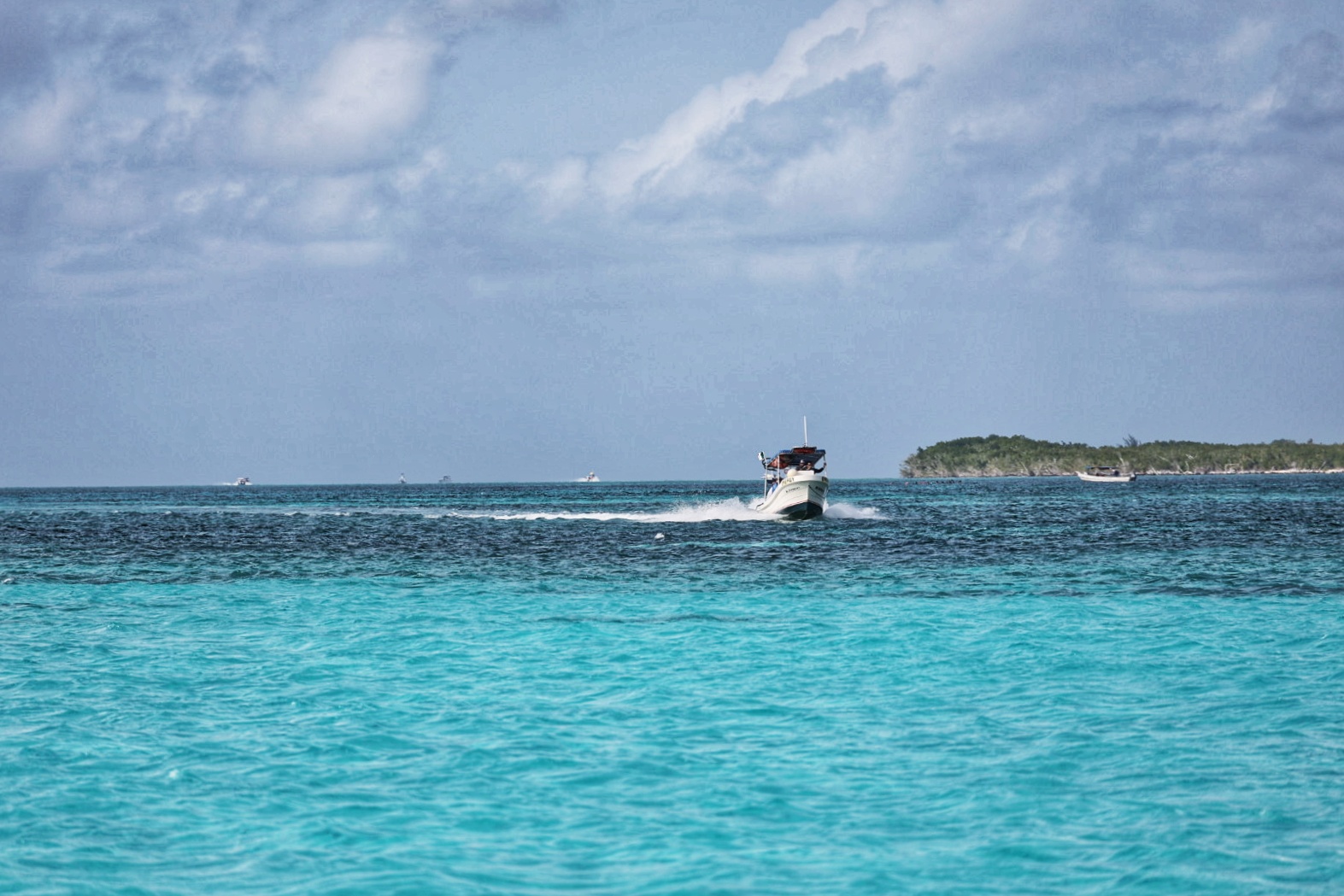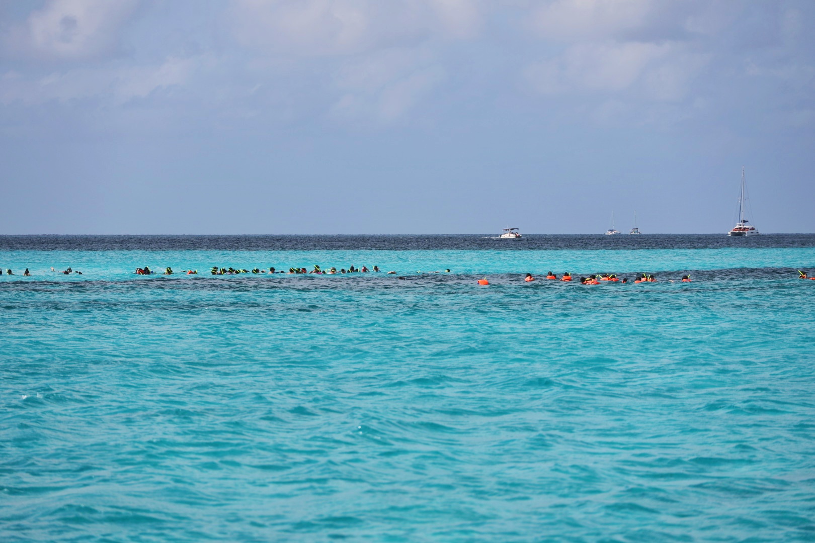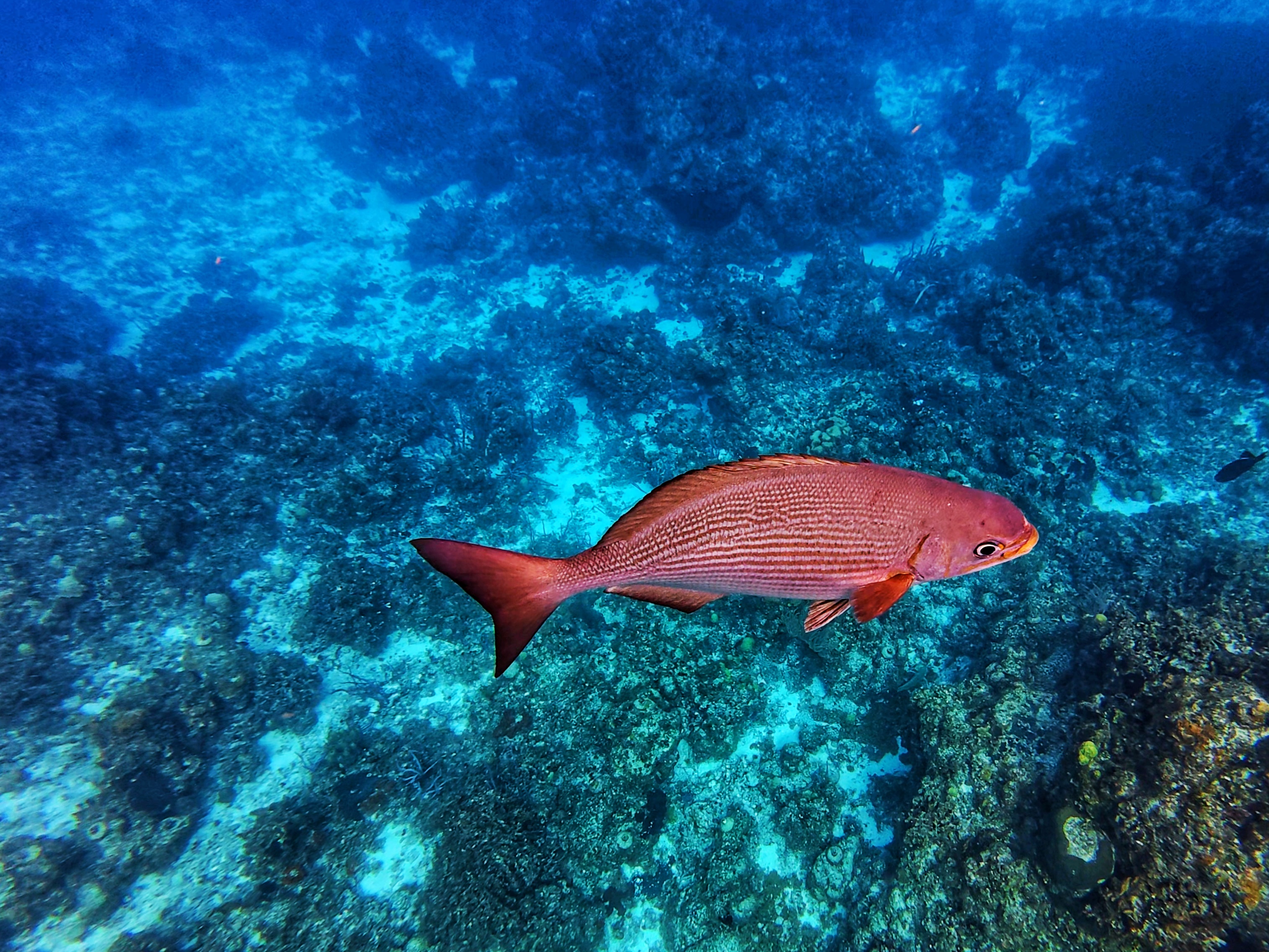 Ein farbenfrohes und gut erhaltenes Korallenriff mit Röhrenschwämmen und Gorgonienfächern bietet Lebensraum für zahlreiche Schwarmfische, aber ebeno das Seegras entlang der Sandbänke ist der optimale Lebensraum für Schildkröten und Seesterne. Möglichkeit der Sichtung von großen Stachelrochen, Seesternen, Schildkröten, Papageienfischen, Barrkudas und vielen anderen Schwarmfischen. Drei Schnorchelstopps in flacher bis moderater Tiefe mit möglicher Strömung.